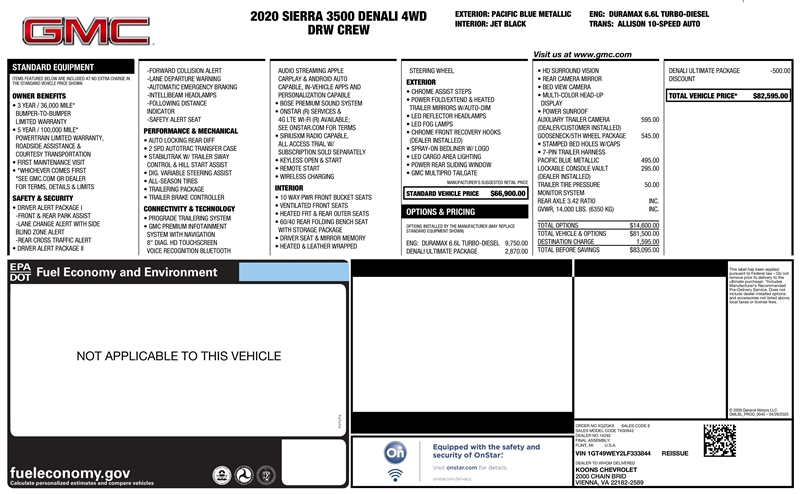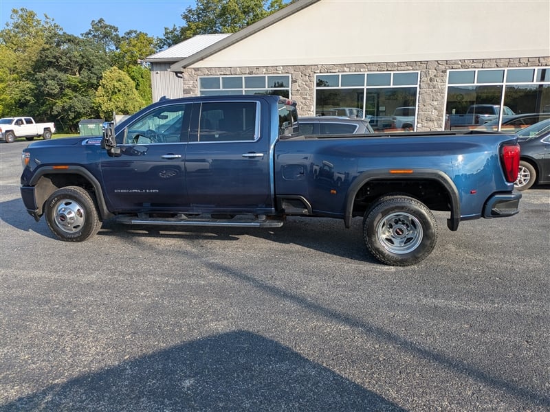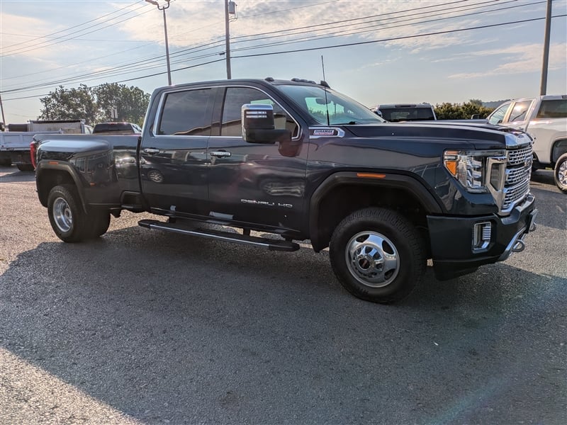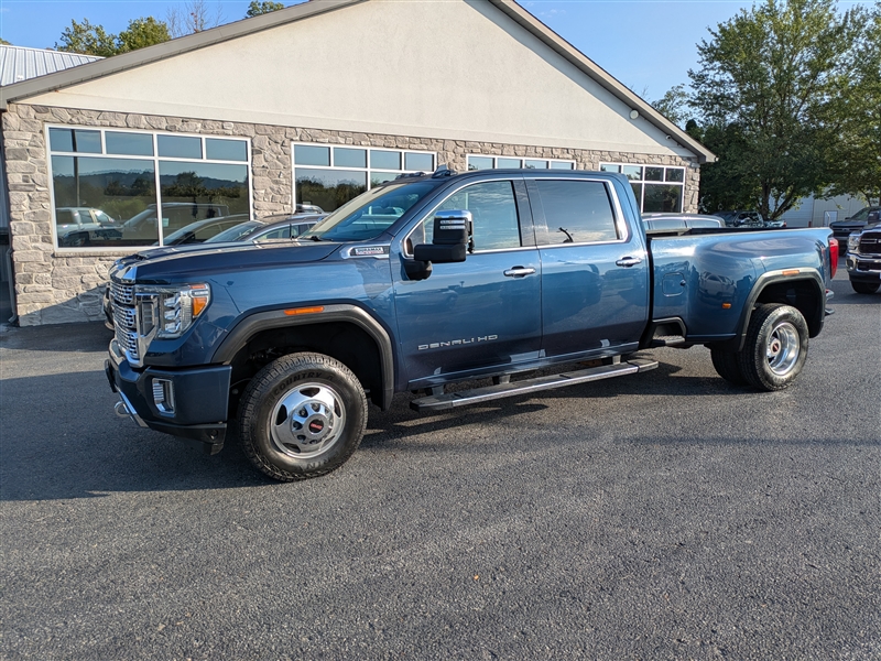 2020 GMC Sierra 3500HD DENALI crew cab dually, with the Duramax diesel and Allison transmission. Pacific Blue Metallic paint with Jet Black leather interior. Denali Ultimate Package, HD Surround Vision, Multipro tailgate, heated/ventilated seats, heated steering wheel, Head Up Display, and more. Serviced and inspected.